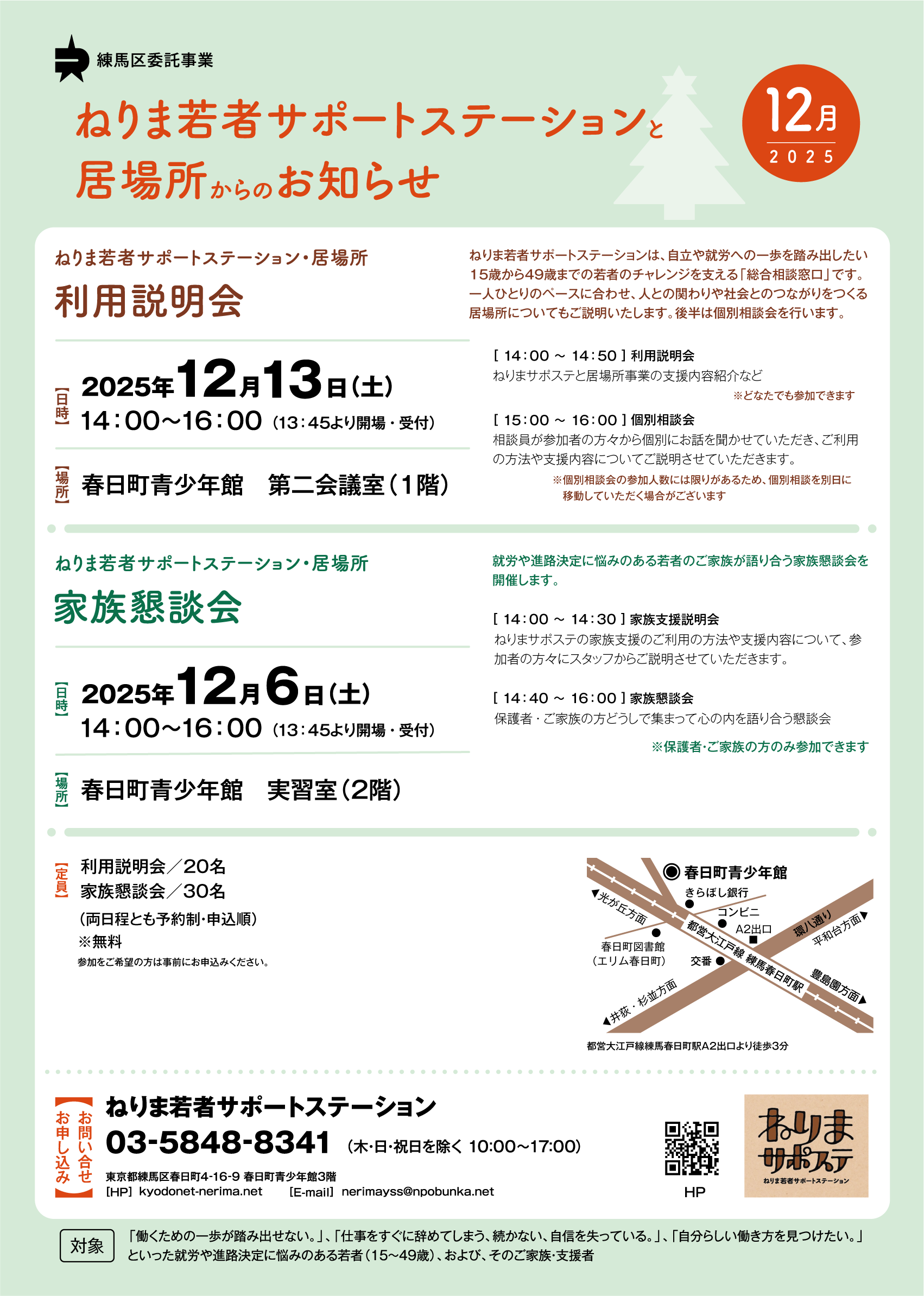 就労や進路決定に悩みのある若者のご家族が語り合う家族懇談会を開催します。ぜひ、ご参加ください。
