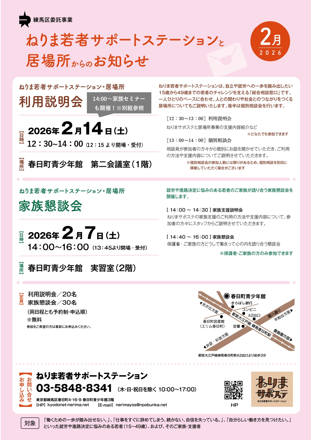 就労や進路決定に悩みのある若者のご家族が語り合う家族懇談会を開催します。ぜひ、ご参加ください。